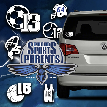 INTRODUCING… PROUD SPORTS PARENTS™ Decals. Customize your vehicle with you child’s SPORT, NUMBER and SCHOOL.