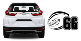 Show off your pride with this “Soccerball and Number” window decal. Please indicate your number in the text area. This is an all vinyl product with life expectancy of approximately 3-5 years. Be proud. Be a… proud sports parent!